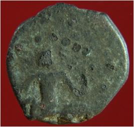| Description / विवरण | It is punch marked coin, made up copper. It has a human figurine present over one side surrounded by dot like designing over peripheral area. On other side we have symbolic designing. Its surface is rough and uneven, colour is blackish and might be used as currency. |