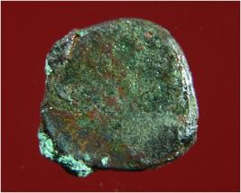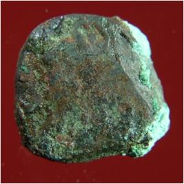 | Description / विवरण | Trench CZZ-8, LxB-D 49.00 mts x 26.00 mts - 0.50 mts. B.peg . CZ-7, Stratum-Dump. It is a punch marked coin, having some pictography on it, which is not clear, used for currency. Made up copper, and edges are uneven and colour is burntsena brown. |