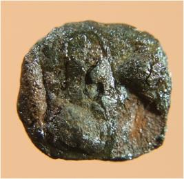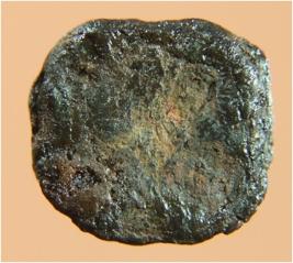 | Description / विवरण | Trench CZZ-8, LxB-D 46.50 mts x 34.00 mts - 0.20 mts. B.peg . CZ-7, Stratum-1. It is a punch marked coin, It seems that it has some pictography on it, which is not clear now due to corrosion, used for currency. Made up copper, and edges are uneven and colour is burntsena brown black. |