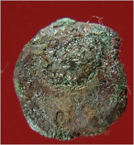 | Description / विवरण | Trench CZZ-8, LxB-D 43.30 mts x 33.50 mts - 1.00 mts , B.peg CZ7,Stratum-2. It is a punch marked coin, made up copper alloy. Having pictography on both sides but unclear and unidentifible. Surface is uneven and it is of burnt brown in colour. This coin was used as currency at times. |