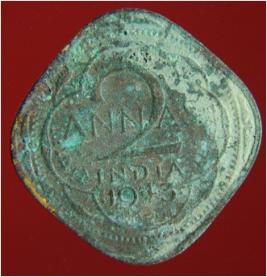 | Description / विवरण | Trench Surface collection It s a copper coin, made up copper, belonging to the reign of George VI and year 1913.its having a face value of 2 Anna. |