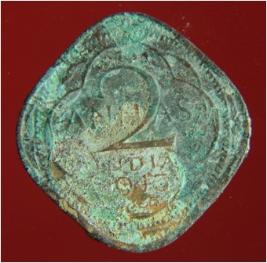 | Description / विवरण | Trench Surface collection It s a copper coin, made up copper, Squarical shape,bilonging to the reign of George VI period 1913 and having a face value of 2 Anna.. |