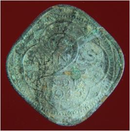 | Description / विवरण | Trench Surface collection It s a copper coin, made up copper, of the period 1943 and having a face value of 2 annalist has a squaretail shape. |