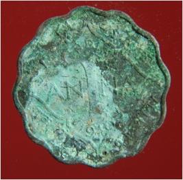 | Description / विवरण | Trench surface find. It is a coin, made of copper. It has hard patina over it. It is an untreated coin. It might be used as currency. Its surface is rough and uneven. Its colour demolished to green looks. |