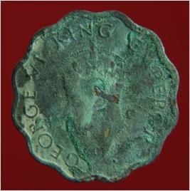 | Description / विवरण | Trench surface collection. It is a coin made of copper. It has hard patina over it. It is an untreated coin. It was minted during the reign of emperor George VI. It costs one Anna. Its surface is rough and uneven. Its colour is copper brown. |