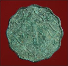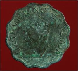 | Description / विवरण | Trench surface collection. It is a coin made of copper. It has hard patina over it. It is an untreated coin. It was minted during the reign of emperor George VI. It costs one Anna. Its surface is rough and uneven. Its colour is light green. |