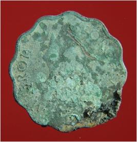 | Description / विवरण | Trench surface found. It is a coin made of copper. It has hard patina over it. It is an untreated coin. Its surface is rough and uneven. Its colour is green. |