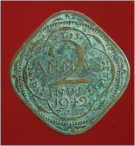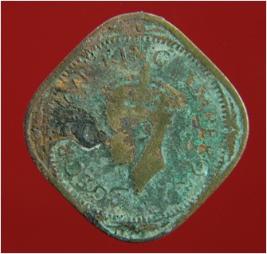 | Description / विवरण | Trench surface found. It is a square shape coin made of copper. It has hard patina over it. It is an untreated coin. Its dating is 1949 and costs two annas. Its surface is rough and uneven. Its colour is copper brown. |