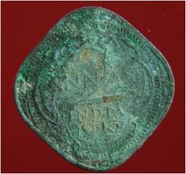 | Description / विवरण | Trench surface found. It is a square shape copper coin. It has hard patina over it. It is an untreated coin. Its surface is rough and uneven. Its colour is greenish. |