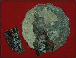 | Description / विवरण | Trench surface found. It is a copper coin. It has hard patina. It is an untreated coin. Its surface is rough and uneven. Its colour is greenish. |