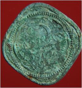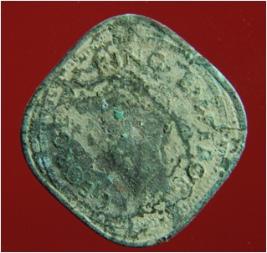 | Description / विवरण | Trench surface found. It is a square shape copper coin. It is an untreated coin. Its surface is rough and uneven. Its colour is greenish. |