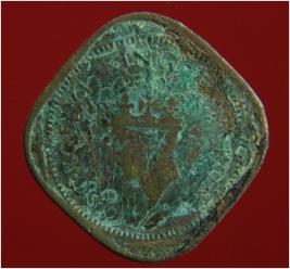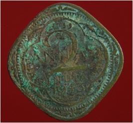 | Description / विवरण | Trench surface found. It is a square shaped copper coin. It is an untreated coin. It has two Anna cost. Its surface is rough and uneven. Its colour is brownish. |