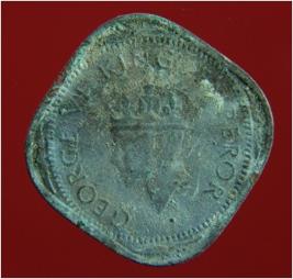 | Description / विवरण | Trench surface found. It is a square shaped copper coin. It is an untreated coin. It has a picture of emperor George V. Its surface is uneven. Its colour is brownish. |