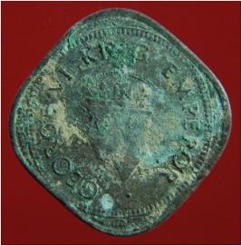 | Description / विवरण | Trench surface found. It is a square shaped copper coin. It is an untreated coin. It has a cost of two Anna issued in 1944. Its surface is uneven. Its colour is brownish. |
