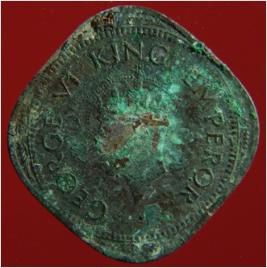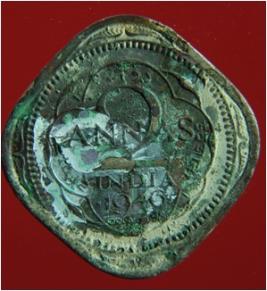 | Description / विवरण | Trench surface found. It is a square shaped coin, made of copper. It is an untreated coin. Hard patina is present on the object. Its surface is rough and uneven. The colour of the object was demolished from copper brown. It was used as currency. |