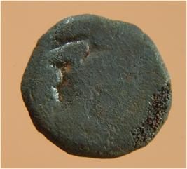 | Description / विवरण | Trench BX-1, Depth 0.80 at V, Stratum Pit no.2 sealed by Layer 1 It is a copper coin. Basically it is a punch mark coin. Surface is uneven suggesting that it had some pictography which is now unclear and unidentifiable. It may be used as currency at times. Patina is present due to oxidation or corrosion. Colour has changed to burnt brown. |