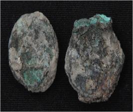 | Description / विवरण | Trench BX-1.Depth-30 cms. Stratum-layer 4. These are two copper coins. Almost circular in shape. Features are not visible due to presence of patina with dust and dirt. Appearance is dusty green. |