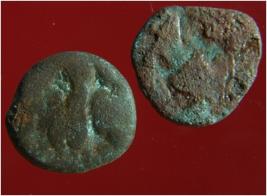 | Description / विवरण | Trench ZA 1, Qdt-3, Breadth 3, Depth 30 cm, Stratum Layer 1 It is a punch mark coin made of copper alloy, both the coins have human figure on one side and other side has symbol which is unclear and unidentifiable. Surface of object are uneven and rough. Colour of object are burntsena brown and copper brown. These coins may be used as currency at times. |