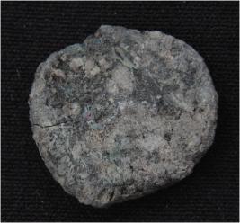 | Description / विवरण | Trench CX-4, Length- 2.0 mtrs. Breadth-17.35 mtrs. Depth- outside brick floor 35 cm below. Stratum- Layer 5. It is a copper coin. Surface is an uneven. Colour is greenish. Features are not visible due to deposition of dust and dirt. Appearance is muddy. |