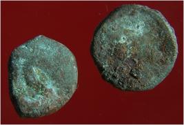 | Description / विवरण | Trench ZA1-Qdt-3 , Stratum-layer 2. It is a metal punch marked coin, made up copper. Having some pictography and symbols or may be inscription on it, which is unclear and identifiable due to presence of hard patina on object. One coin is circular and other coin is uneven from edges, surface of coin are rough and uneven. Used as currency at times. |