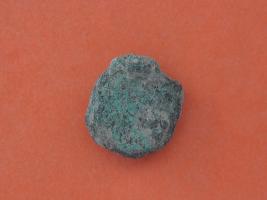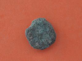| Description / विवरण | Trench B, Length XI1.10 , Breadth 2.50 m, Depth 0.90 mbs at X1, Stratum Pit 3 Loose greyish earth. It is a coin made of copper. The object has a disc like shape and rough surface. Soft patina present over it. Colour is copper green. |