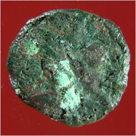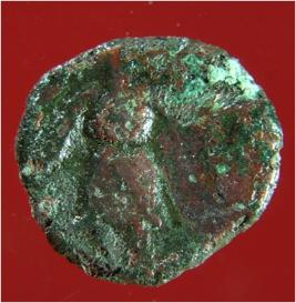 | Description / विवरण | Trench B-1, Length-V to 4.50 mtrs x 1 mtrs, Depth- 1.90 mtrs at V. Stratum-layer 7. Punch marked coin, made up copper. Human figure is minted on its one side. On the other side coin it may be a symbol which is unclear and unidentifiable due to presence of hard patina on object surface. It is used as currency at times. Greenish brown in colour. |