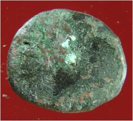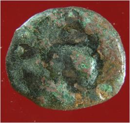 | Description / विवरण | Trench BX-1, LxB-D V 2.50 mtrs x 2.50 mtrs - 2.55 mtrs at v . Stratum-layer 8. Punch marked coin, made up copper. Pictography is unclear and unidentifiable on both sides of coin. It is used as currency at times. Burnt brown in colour. |