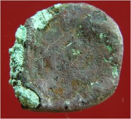 | Description / विवरण | Trench B-3, LxB-D 5 mtrs x 2.50 mtrs- 2 mtrs at V, Stratum-layer 11. It is a punch marked copper coin. It has unclear mark on its one side. It has patina. The colour of object is copper brown. It might be used as currency. |