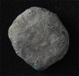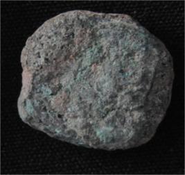 | Description / विवरण | Trench Length VIII1.15, Breadth 2.75 m, Depth 1.85 mbs from VII1, Stratum Layer 6 The object identified as coin made of copper alloy. Sap green tint is visible on it, rotund in shape. Surface of the object is rough and craggy. |