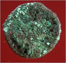 | Description / विवरण | Trench ZA-1,Qdt-3, LxB-D 0.97 mts x 1.52 mts - 7.6 mts at peg B1. Stratum-24. Its an untreated metal coin, made up of copper alloy, round disc like shape. No other detail are visible. |