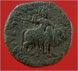 | Description / विवरण | Trench ZA-1,Qdt-2,Depth - 8.79 mtrs B.peg B1,Stratum-layer 26. It is a punch marked copper coin, one side of coin there is human figurine and on other side there is a lady rides over a bull. It might be used as currency. It surface is rough and uneven. Its colour is copper brown. |
