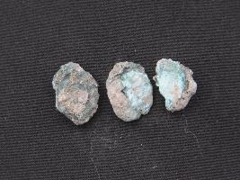 | Description / विवरण | Trench SGL-6, L x B XVII .20 x 2.00 These are three copper coins. Surface are uneven. Colour are greenish. |