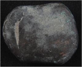 | Description / विवरण | Trench SGL-2B, LxB-D VII .90 x 2.15 - 1.45 mbs from VII, Stratum Layer 5 It is a copper coin. Surface of object is uneven. Colour is greenish. Features are not visible. |