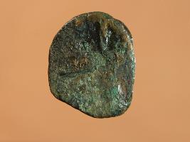 | Description / विवरण | Trench FX-3, LxB-D XXXI3 x 3.90 - 2.25 mtrs below peg XXVII3, Stratum Layer 10 It is a punch marked coin made of copper. It has human figurine over one side of it. Surface of object is rough and uneven. It has hard patina over it. Colour of object is copper black. |