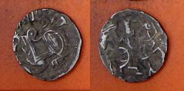 | Description / विवरण | Descrpn./Obv Recumbent bull facing left, wearing jhula (saddle cloth), with trisula (trident) symbol on rump. Above, legend in Sarada script Sri Samantadeva . Descrpn./Rev Rider with lance on caparisoned horse facing right. On left, Sarada letter bhi and on right, Sarada letter ta |