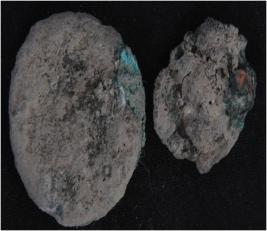 | Description / विवरण | Trench C-3, Stratum Layer 3 There are two coins made of copper. It has disc like shape. Features are not visible due present of patina with dust and dirt. |