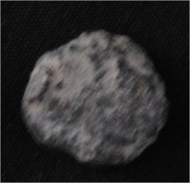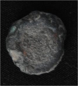 | Description / विवरण | Trench SGL-2B, Length VII1.65, Breadth 2.50 m, Depth 1.95 mbs from VII, Stratum Layer 6 The object identified as coin made of copper alloy, small rotund in shape, having rough, craggy surface, sap green hue on it, covered by hard patina. |
