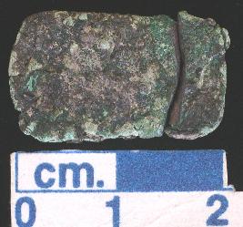 | Description / विवरण | A copper coin, rectangular with in shape, badly corroded with green patina, traces of punched marks seen. |