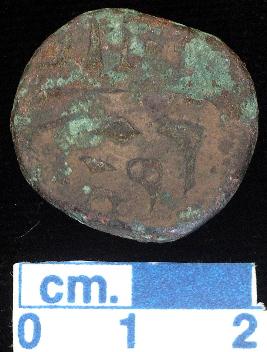 | Description / विवरण | A copper coin, traces of punched marks seen, green patina seen on side. |