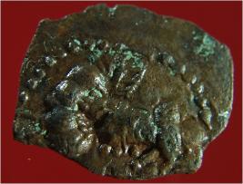 | Description / विवरण | Stratum Surface Find It s a broken punch marked copper coin. On the A side, we have a bull figurine, might have been a clean emblem of any dynasty. On the B side, we have some pictographic things. One thing looks like a ladder. Surface is rough, craggy and uneven of copper brown colour. |