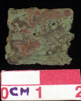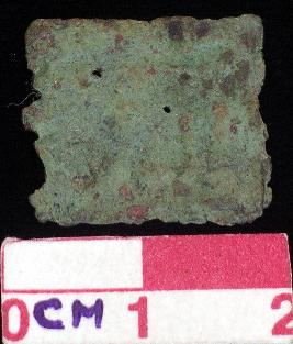 | Description / विवरण | A copper coin squarish in shape. Some impression is on both side and fully both side patina but also two minor holes in coin. |