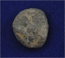 | Description / विवरण | Trench SGL-2, Stratum Near the V peg It is a small copper coin with hard patina. Surface is rough and uneven. Its features are not visible due to presence of heavy dust and dirt. Appearance is dusty grey. |