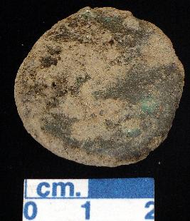 | Description / विवरण | Copper coin, green patina, thick fabric and circular, big, obverse and reverse is fully patinized, unable to identify. |