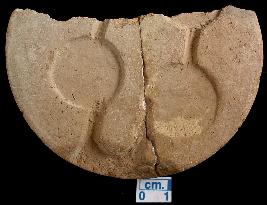 | Description / विवरण | Fragment of a terracotta mould in circular shape, red, possibly used to make coins. |