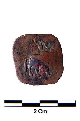 | Description / विवरण | Obverse- Above traces of a railing and wavy line. Below fragmentary legend Mitas . Reverse- Bull to right with Ujjain symbol above. |