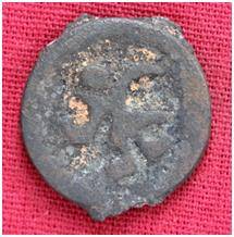 | Description / विवरण | The Shape of the Coin is Circular. Obverse A Standing figure of Kushana type king, with upwards curved right hand and outstretched left hand, wears boots and tunic. Reverse Probably a standing figure of MAO or Moon-God with upwards curved right hand and left hand is not visible, the crescent above the left shoulder, wears tunic and boots. |