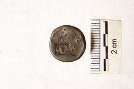 | Description / विवरण | Obverse- Railing above, wavy line on the right. Below legend pra ti me ta sa counter struck with tourine symbol. Reverse- Bull to right before a mount. |