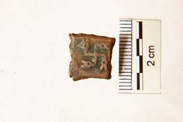 | Description / विवरण | Obverse- Human figure on the right, circle surrounded by arrow and tourine on the left, staff topped with a tourine in the centre. Reverse- Swastika decorated with tourine on all the arrows. |