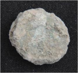 | Description / विवरण | Trench Bolk CY6 - CZ6, Depth 60 cms, Stratum Layer 3 It s a copper coin. Features are not visible due to presence dust and dirt. Muddy in appearance. |