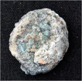 | Description / विवरण | Trench CY-1, Depth 1 cm, Stratum Layer 2 It s a coin, made of copper that has disc like shape, dust brown and green colour and rough surface. Features are not visible due to presence of patina. |
